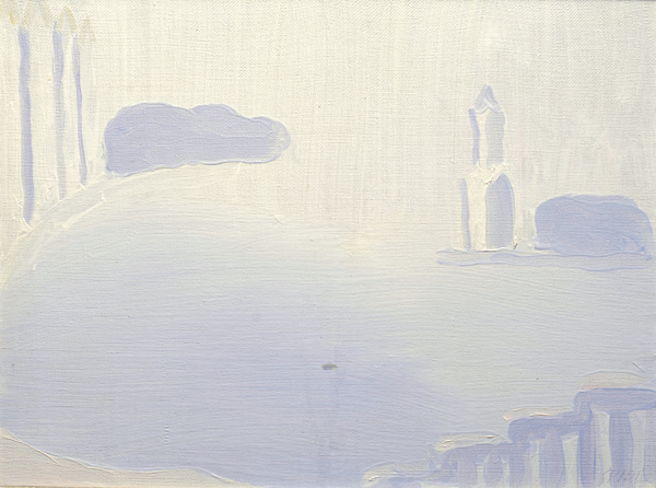Virgilio Guidi (Roma, 1891 - Venezia, 1984) Marina Olio su tela, cm. 30x40 Firma in basso a destra. Sul verso: dichiarazione di autenticità dell'autore; etichetta galleria d'Arte L'Argentario, Trento; etichetta e timbro Galleria d'Arte Sianesi, Milano.