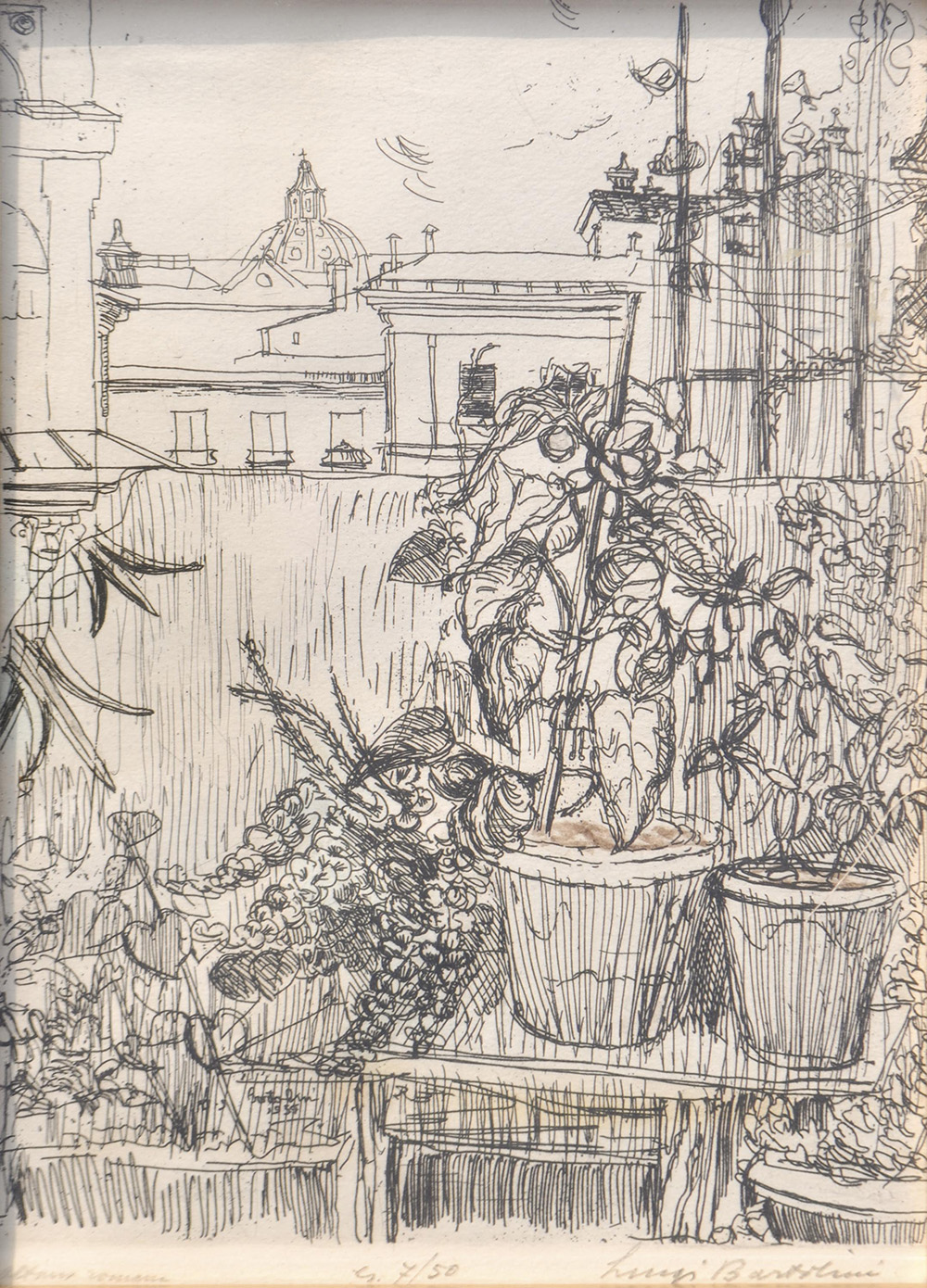 Luigi Bartolini (Cupramontana 1892 - Rom/Roma 1963) Altana romana, 1954;Acquaforte, 31 x 23,5 cm (lastra),