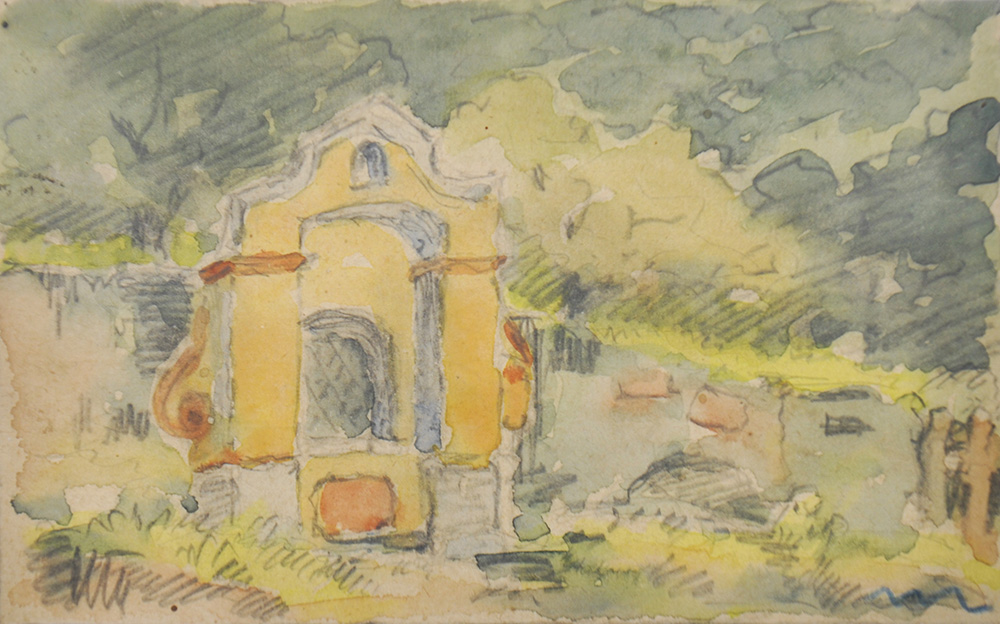 Josef Mahlknecht Bildstock;Aquarell, Bleistift, 8,2 x 13,2 cm, gerahmt