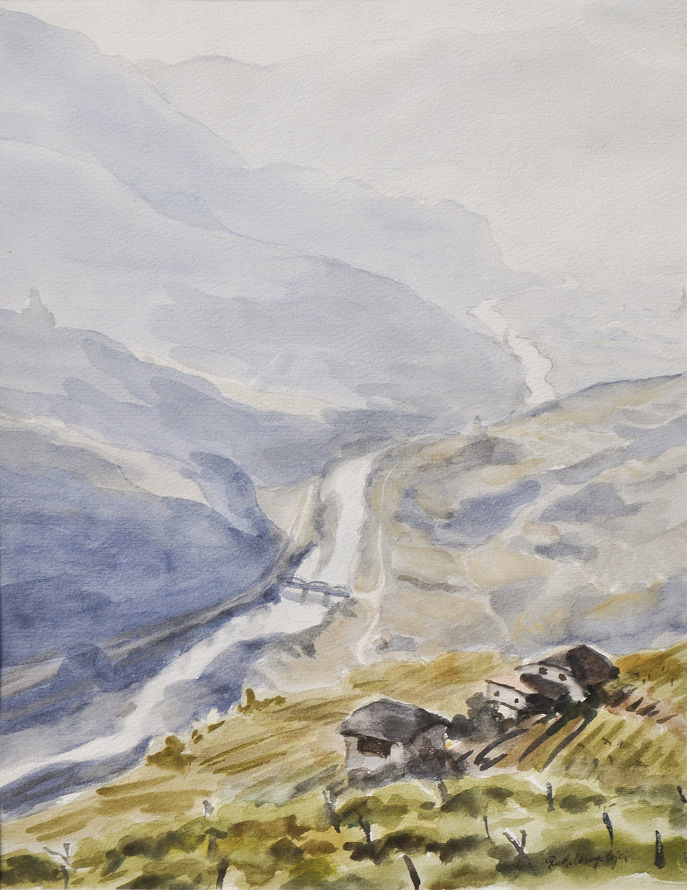 Rudolf Complojer (Mühlbach 1905 – Unterinn 1992) Unteres Eisacktal;Aquarell,...