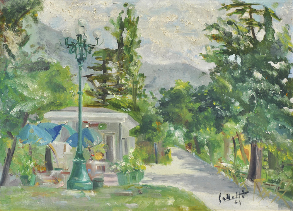Diego Galletti (* Bozen 1949) Talferpromenade in Bozen, 1964;Öl auf Leinwand, 40 x 55 cm