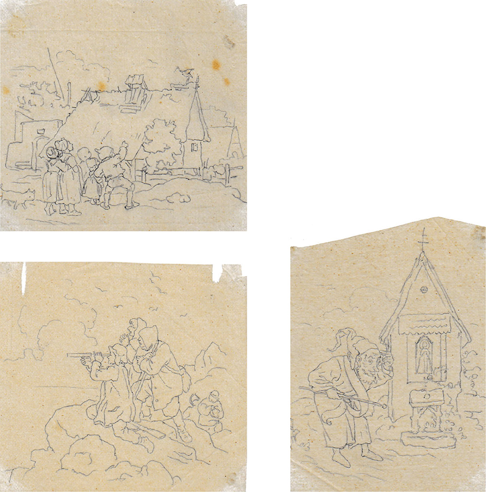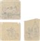 10 kleinformatige Bleistiftzeichnungen auf