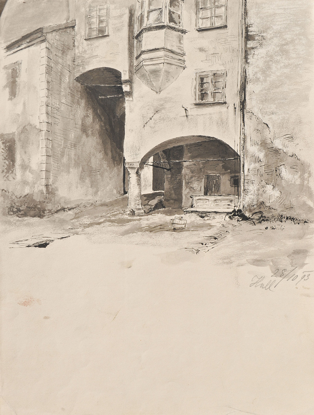 Hugo Grimm (Feldkirch 1866 – Kitzbühel 1944) Häuser in Hall in Tirol, 1893;Tusche, 32,5 x 24,3 cm
