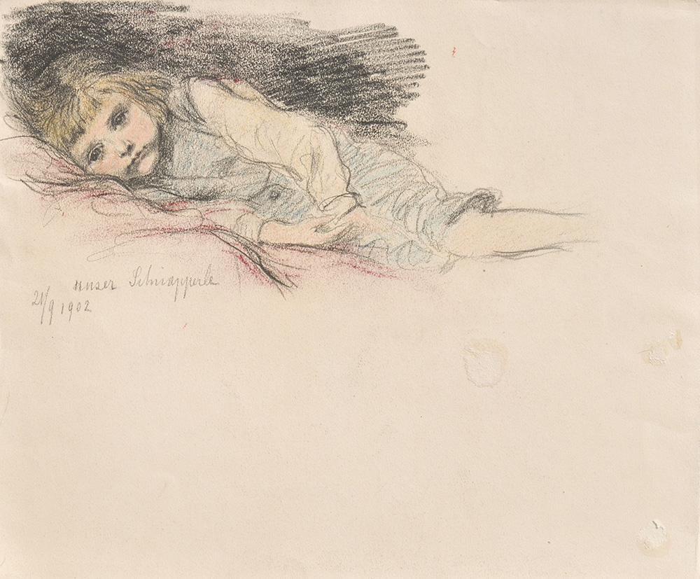 Lotto 317 | Hugo Grimm Liegendes Kind (unser Schnapperle), 1902;Schwarze u. farbige...