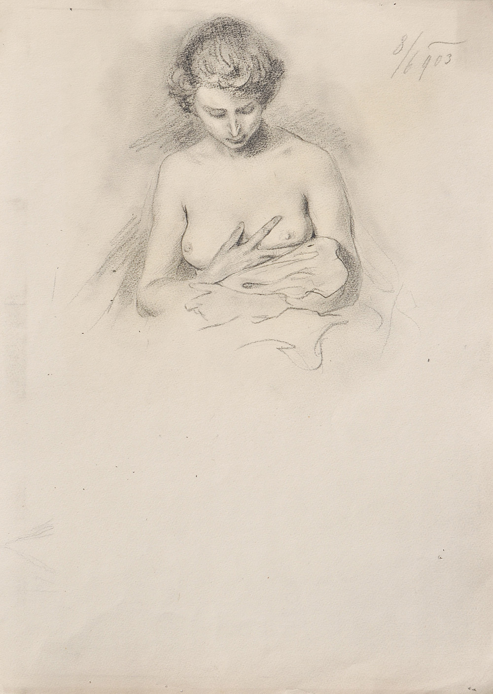 Hugo Grimm Halbakt;Bleistift, 39,6 x 28,6 cm Datiert
