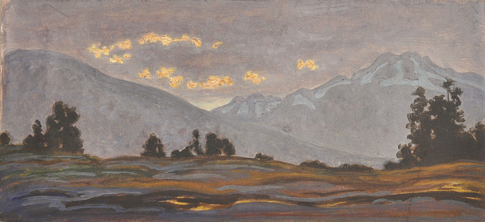 Hugo Grimm Tiroler Gebirgslandschaft im Abendrot;Gouache, 9 x 19,2 cm