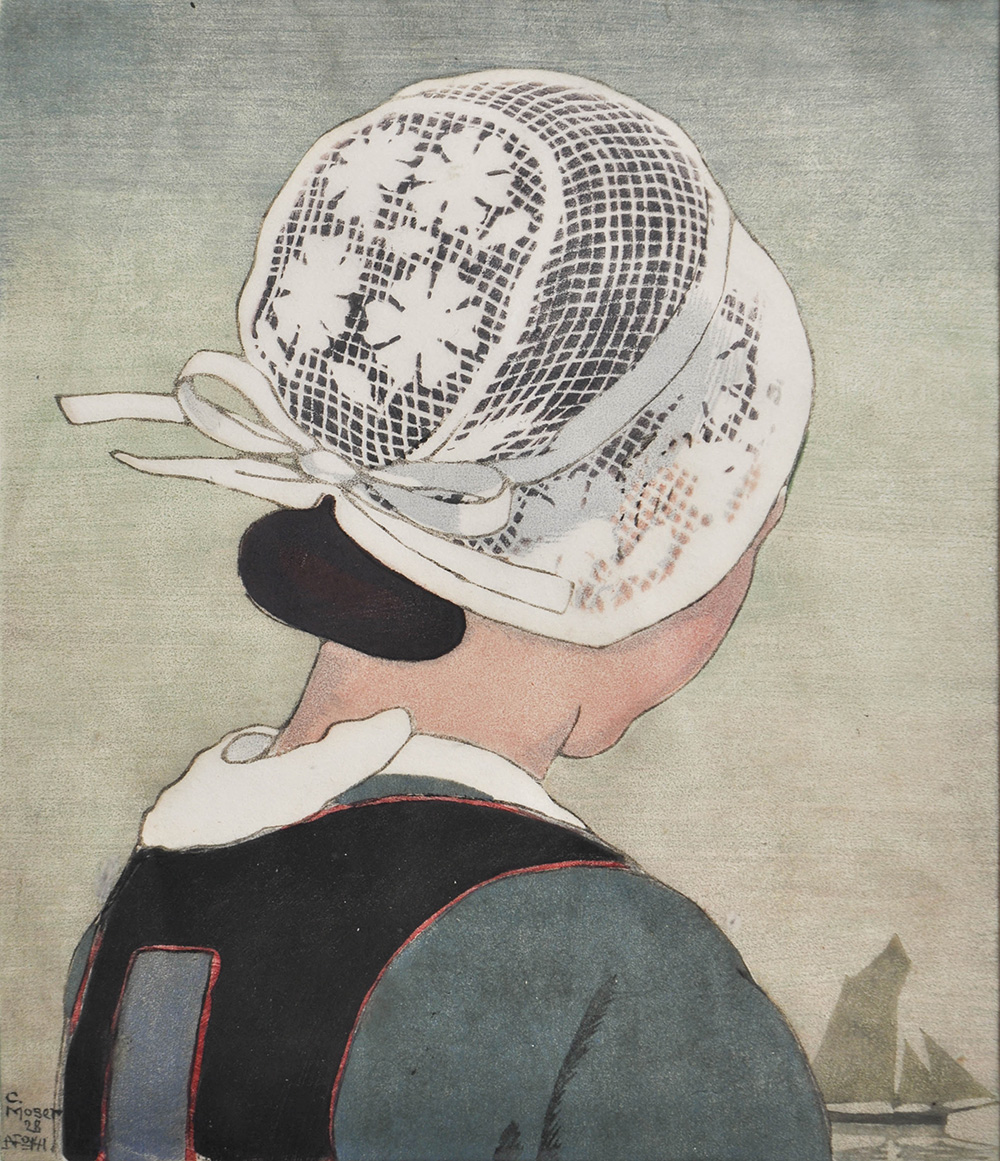Carl Moser (Bozen 1873 – 1939) Bretonisches Mädchen, 1928;Farbholzschnitt, 29 x 24,7 cm, gerahmt