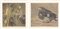 Franz Helmer Spatz im Geäst / Spatz am Boden;2 Farbholzschnitte, 11 x 11 cm,...
