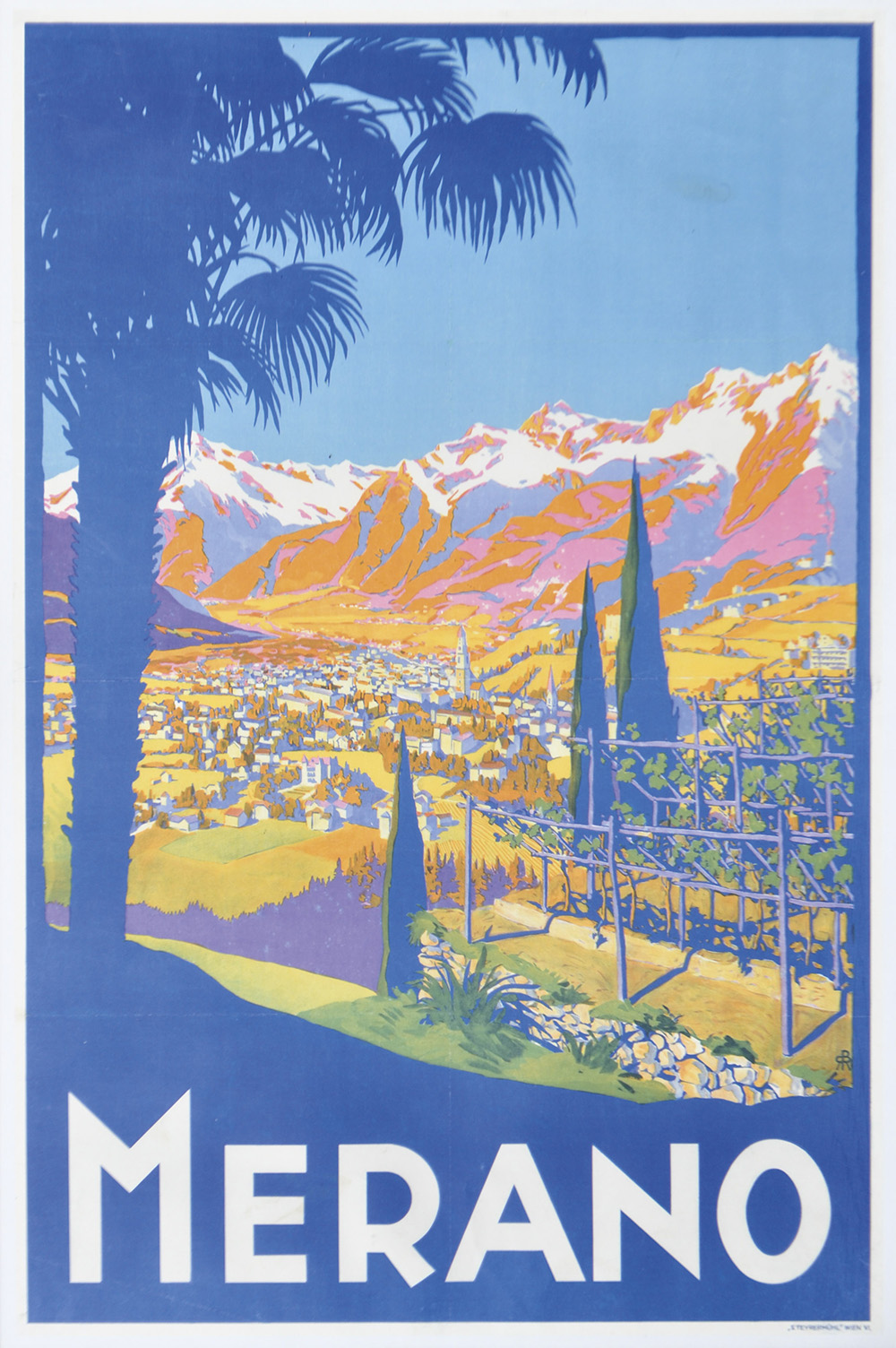 Anonym Plakat „Merano“;Lithografie, 94 x 62 cm, aufkaschiert, gerahmt Druck:...