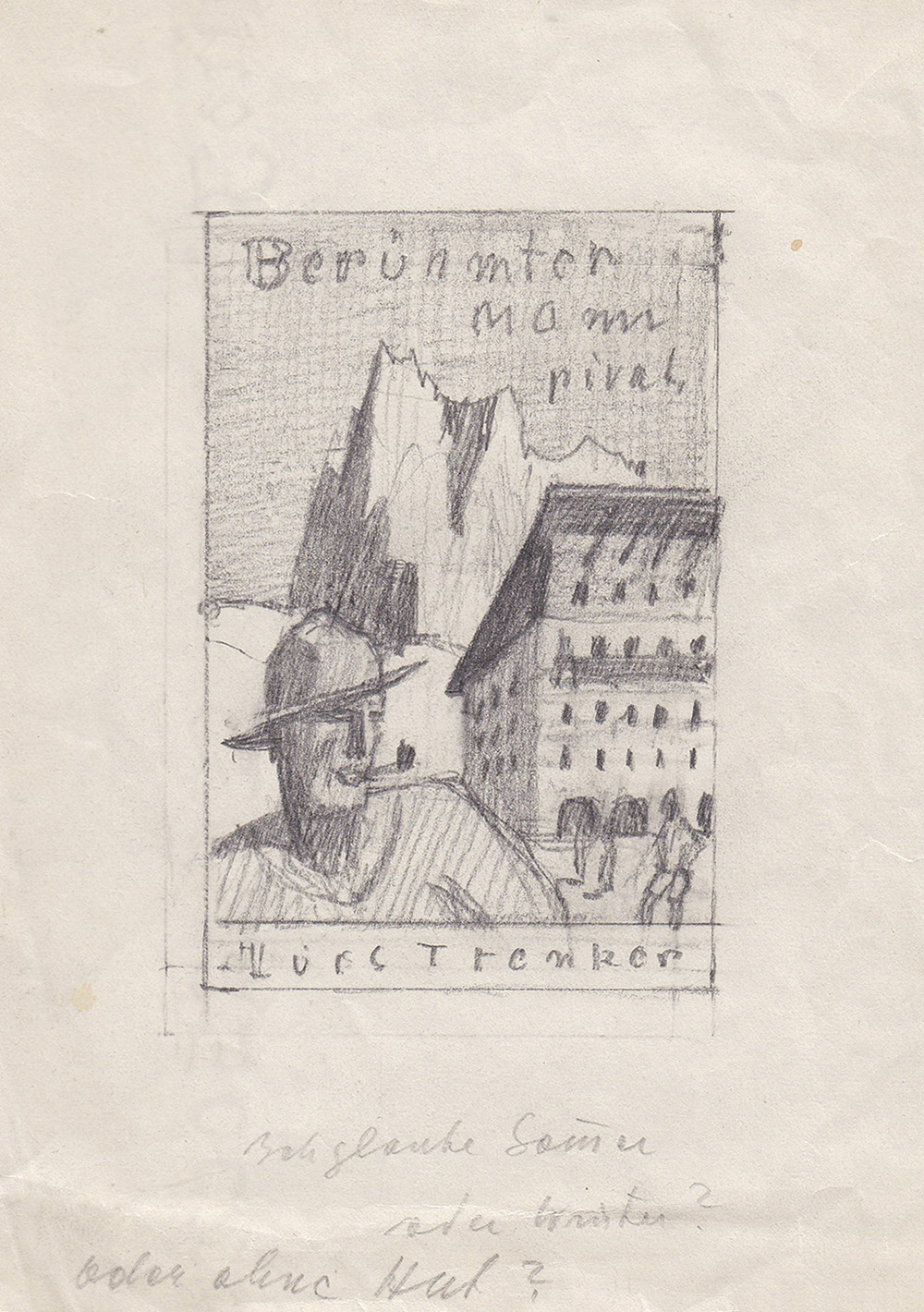 Alfons Walde Berühmter Mann p(r)ivat – Luis Trenker, um 1950;Bleistift, 17,5 x 13,3 cm