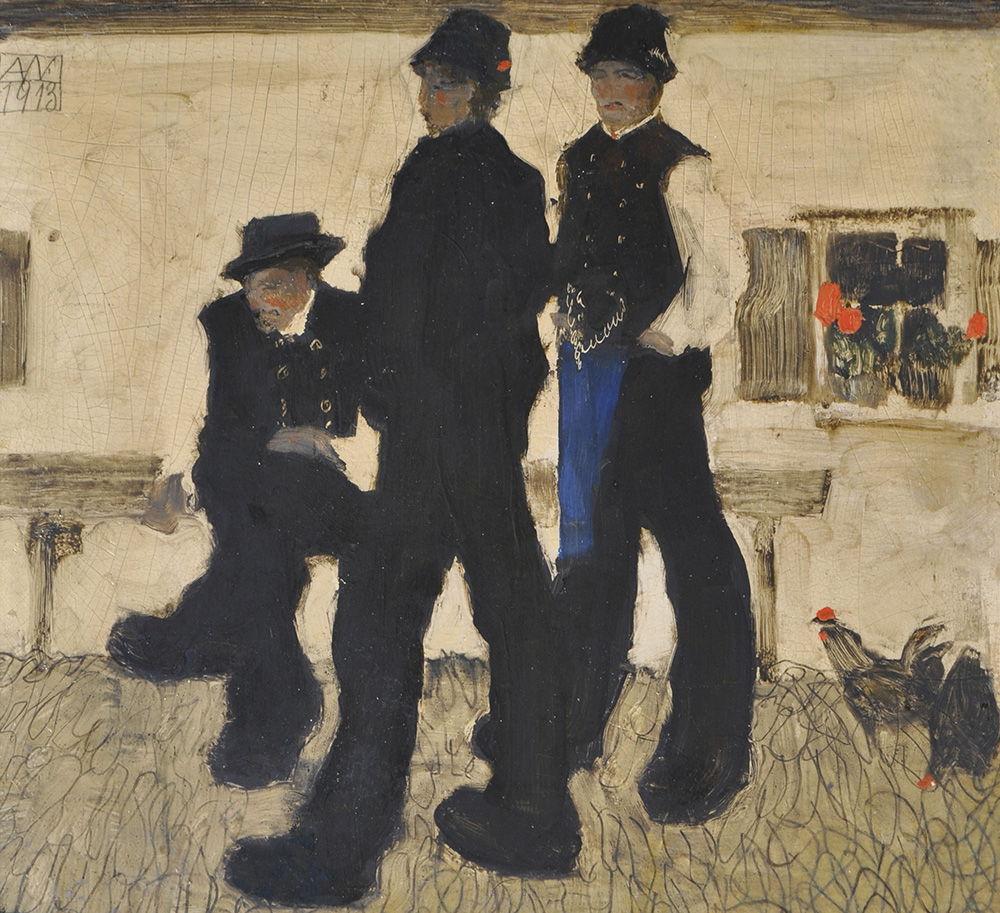 Alfons Walde Feierabend, 1913;Öl auf Karton, 23 x 28 cm, charakteristisches...