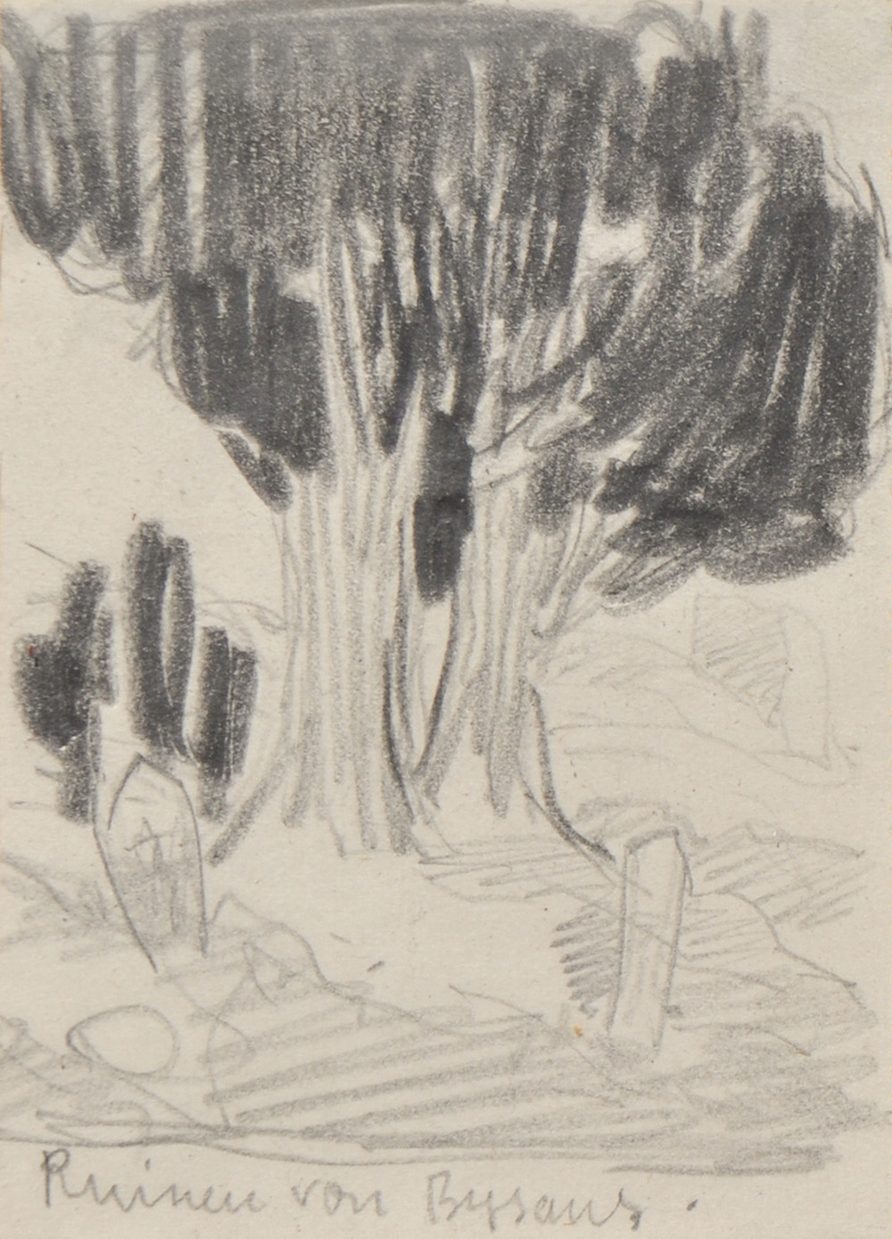 Artur Nikodem (Trient 1870 – Innsbruck 1940) Ruinen von Byzanz, um 1916;Bleistift auf Papier auf Karton montiert, 9 x 6,5 cm, gerahmt