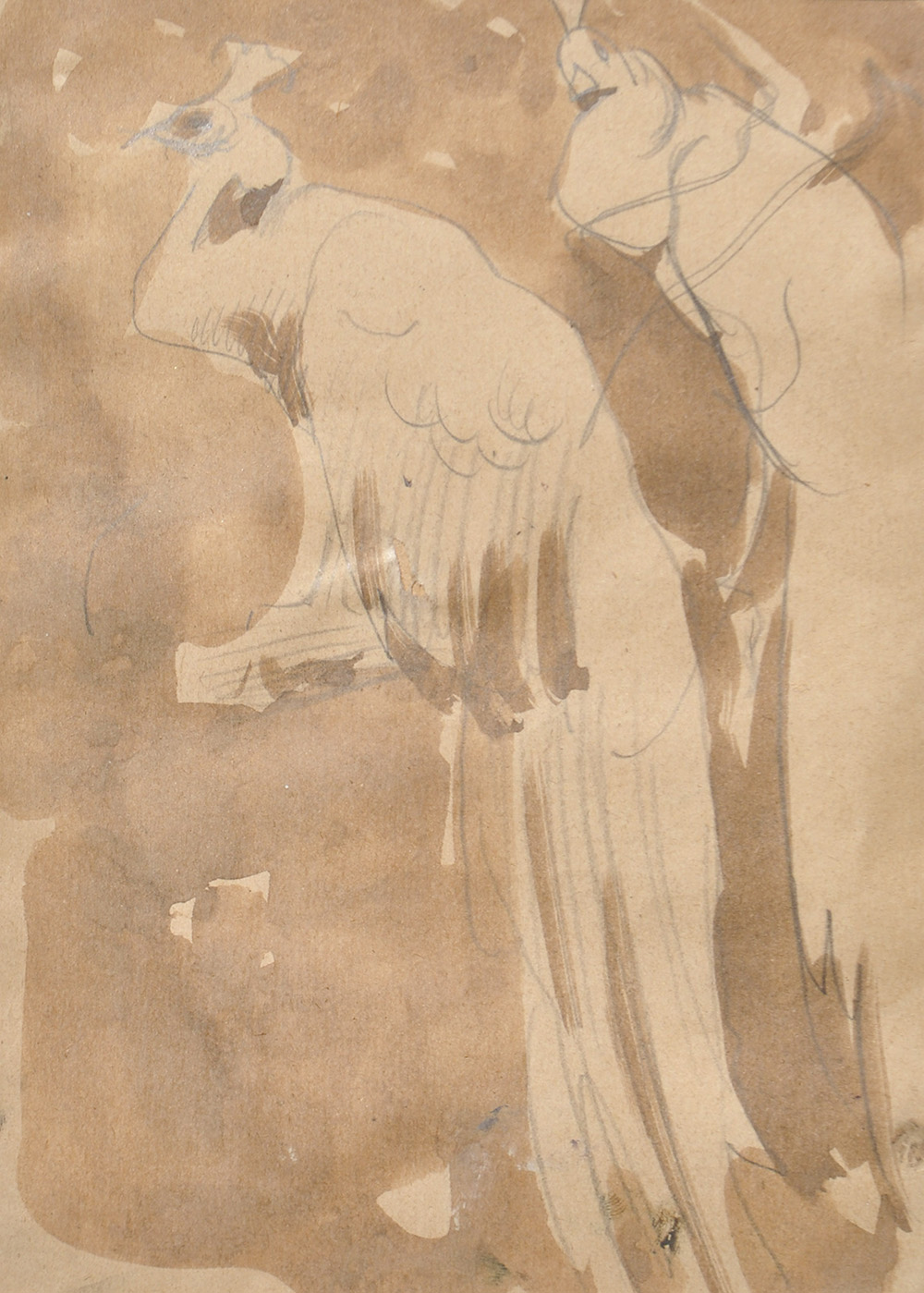 Hans Josef Weber-Tyrol Zwei Pfaue;Aquarell, Bleistift, 20,7 x 15 cm, gerahmt
