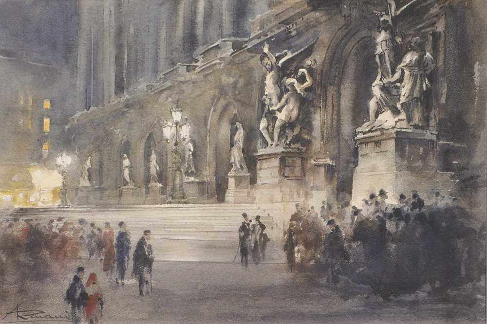 Ernesto Armani (Malè, Trentino 1898 – Rovereto 1986) Oper in Paris, 1950;Aquarell, 33 x 48 cm, gerahmt