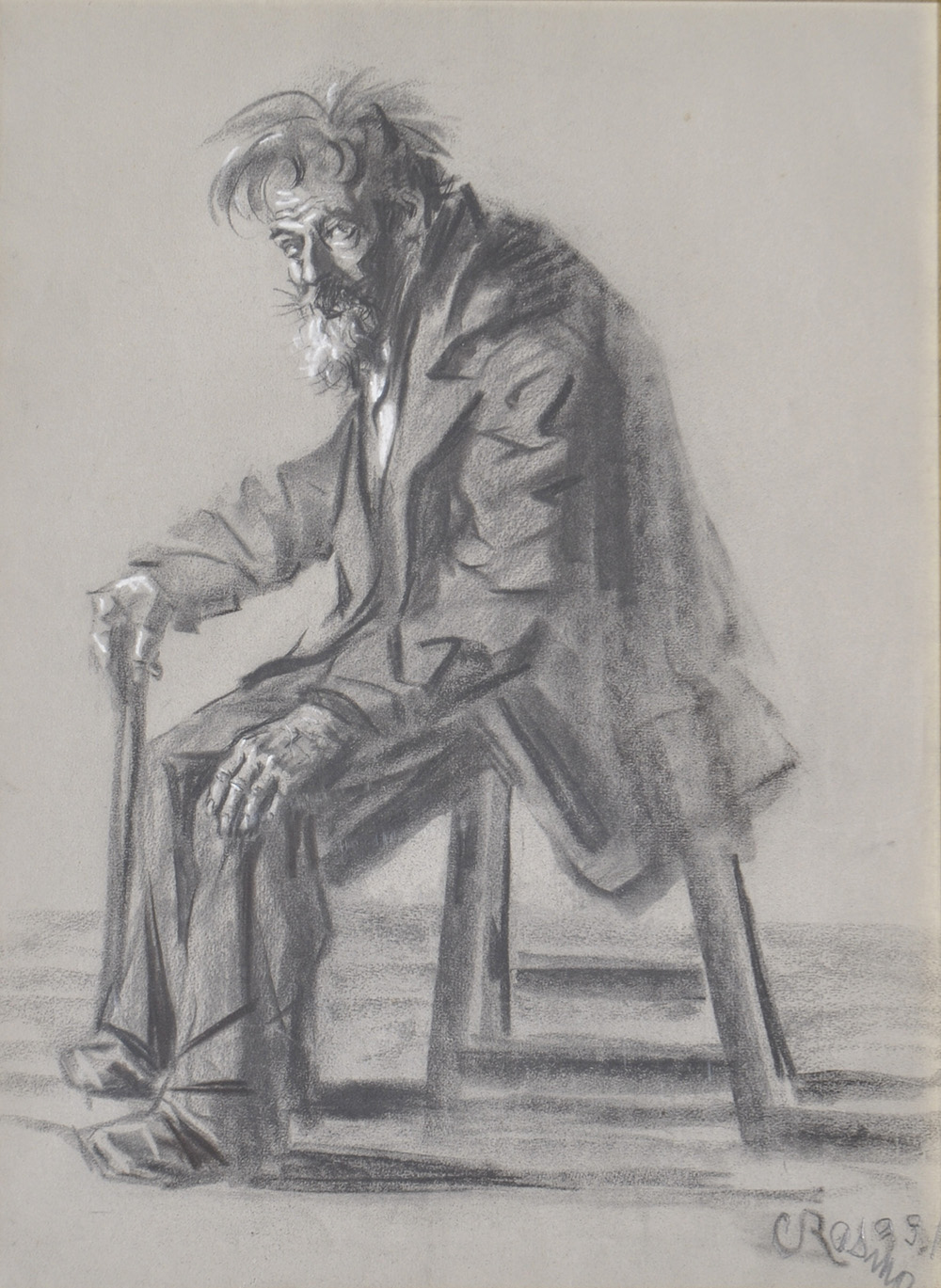 Camillo Rasmo (Cavalese 1876 – Trient 1965) Alter sitzender Mann, 1931;Kohlezeichnung auf Papier, 50 x 40 cm, gerahmt