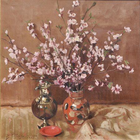 Ulderico Giovacchini (Florenz 1890 – Bozen 1965) Vasen mit Blütenzweigen, 1943;Öl auf Leinwand, 74,5 x 73 cm, gerahmt