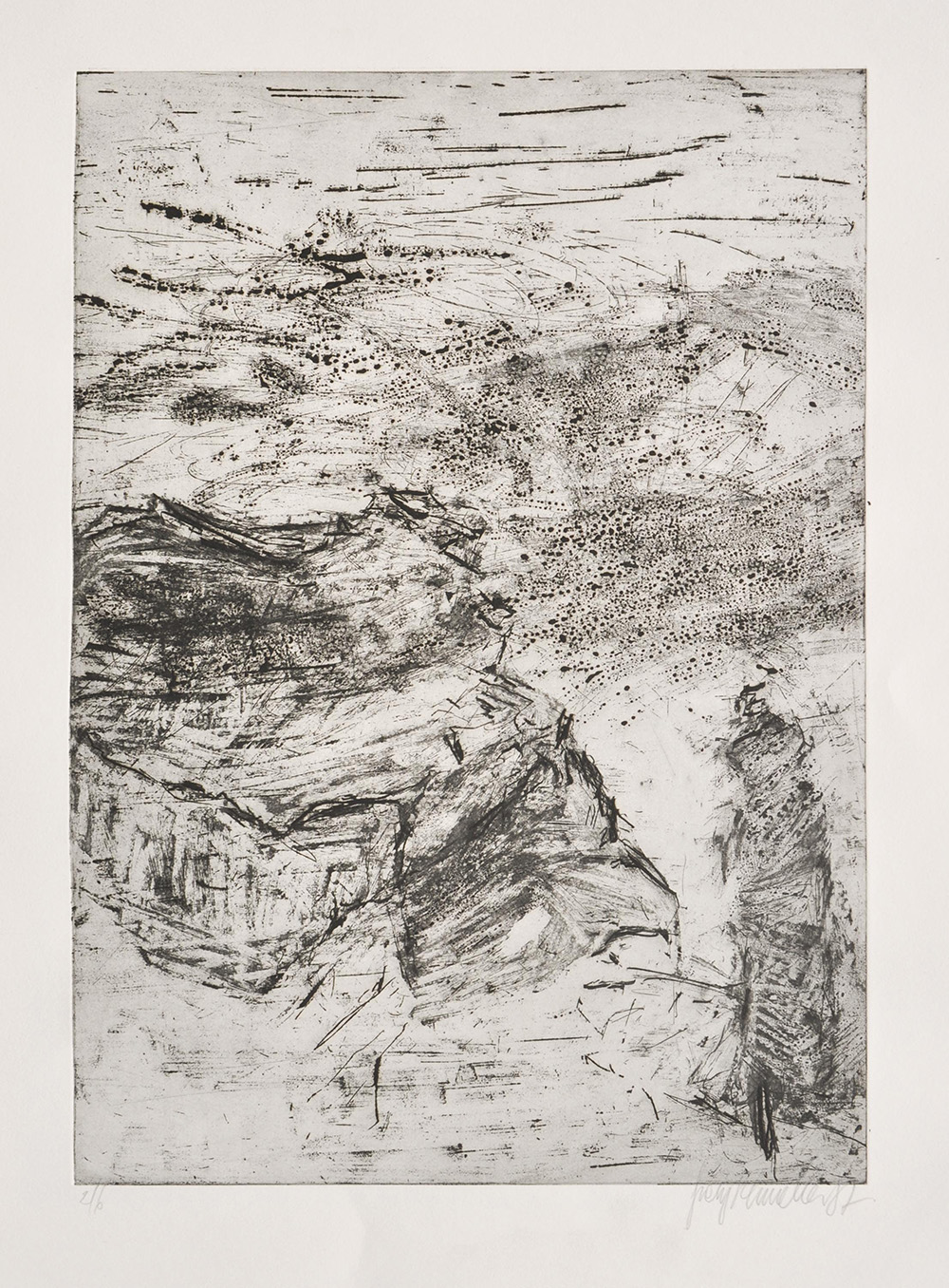 Franz Fischnaller (* Bozen/Bolzano 1954) Mappe „Afrika … oder ein Antlitz der Abschürfung“, 1987;4 Radierungen, je 69,5 x 49,5 cm