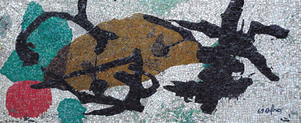 AFRO Udine 04/03/1912 - Zurigo 24/07/1976 Senza titolo, 1969 mosaico cm. 61,5x147, firma e anno in basso a destra, titolo, firma e anno al retro, opera registrata presso l'Archivio Afro (Roma) come da dichiarazione su foto. Pubblicazioni: -Afro a Ravenna, al numero 23; -Afro mosaici, al numero 23.