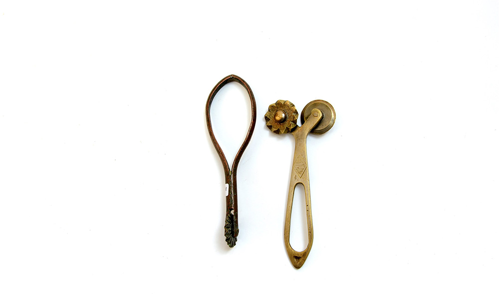 Due rondelle da pasta con manici ad anello, in ottone-ENTwo brass pastry...