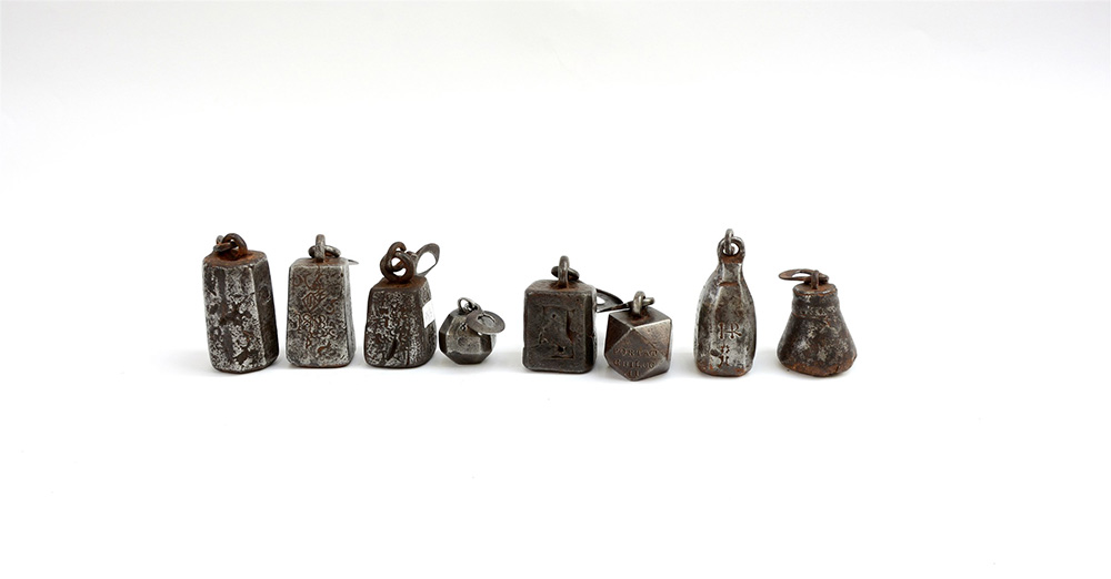 Lotto composto da otto pesi da staderina in ferro-ENEight iron weights
