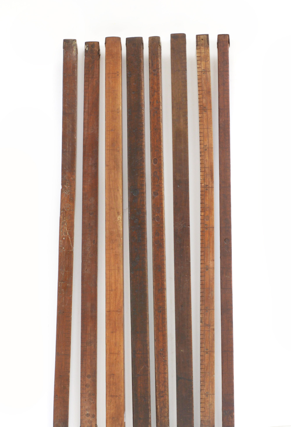 Lotto composto da otto misure e metri in legno-ENEight wooden measures
