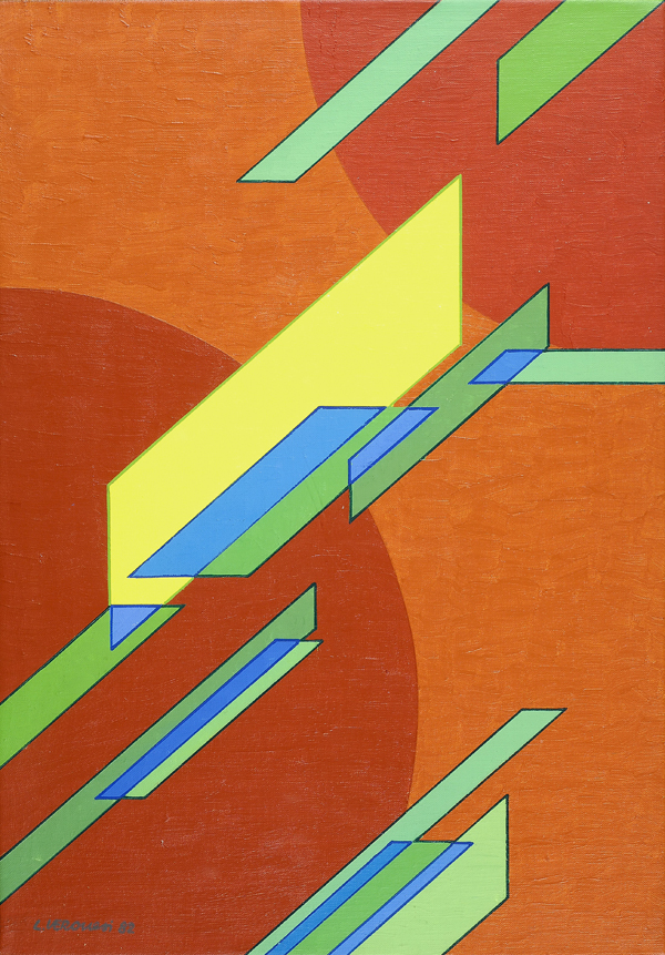 Luigi Veronesi (Milano, 1908 - 1998) Costruzione CL 2, 1982 Acrilico su tela, cm. 33x47 Firma e data in basso a sinistra; sul lverso: titolo, firma e data. Autentica del Comitato Luigi Veronesi su foto, n. A 1982/28