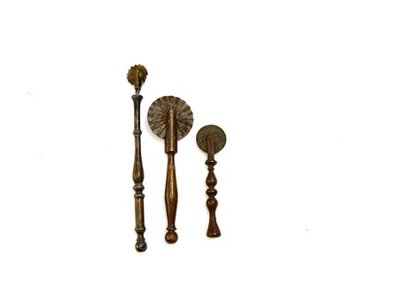 Three bronze baluster handles pastry jiggers (Finlay p. 11)