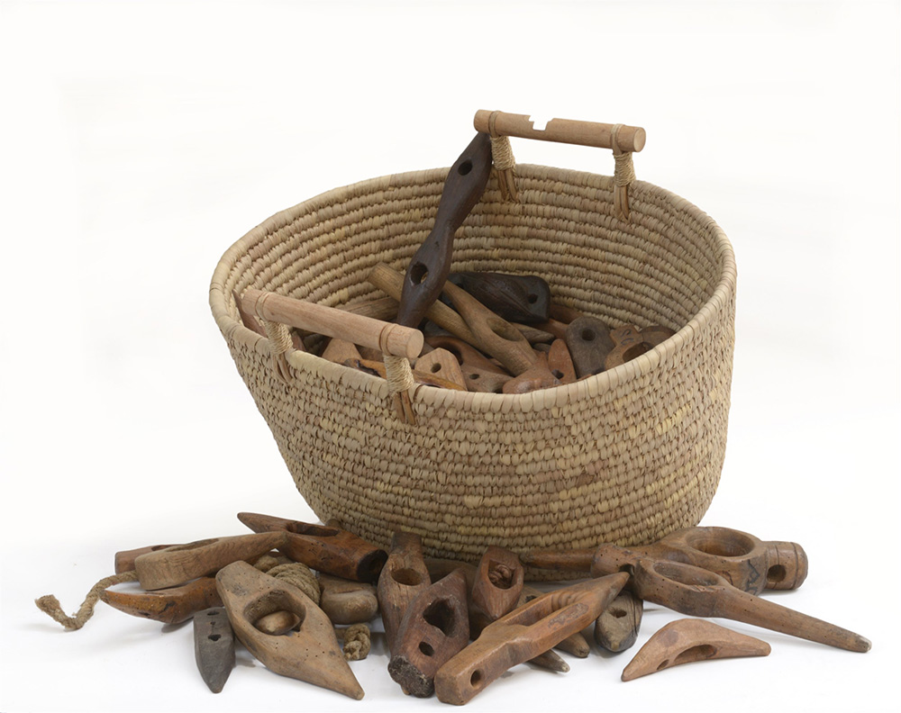 Cesta contenente diversi ganci da fieno in legno-ENA lot of wooden hay clasps