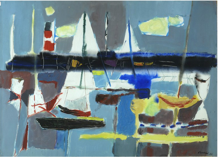 Enrico Paulucci (Genova, 1901 - Torino, 1999) Rapallino, 1962 Olio su tavola, cm. 47x66 Firma e data in basso a destra. Sul verso: etichetta Alleria La Bussola, Torino; etichetta Mostra Personale di Enrico Paulucci presso la Galleria La Bussola, Torino, dal 6 al 20 novembre 1962.