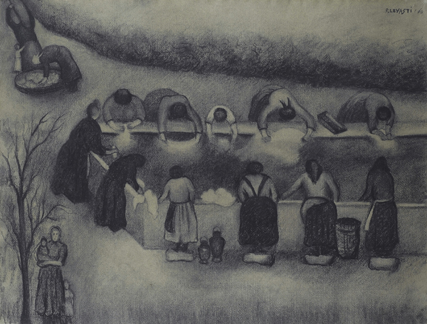 Fillide Levasti (Firenze, 1883 - 1966) Lavandaie, 1960 Carboncino su carta, cm. 47,5x62,5 Firma e data in alto a destra. Bibliografia: Fillide Levasti 1883-1966, a cura di V. Masini, S.p.e.s. Firenze, 1988, Tav. 249, pag. 295.