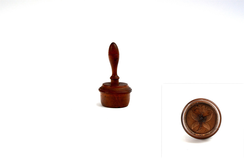 Stampo da burro rotondo a fiore con guida in legno (difetti)