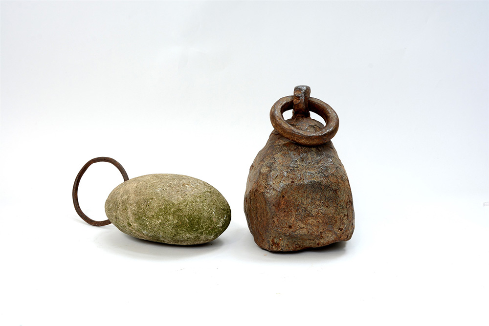 Lotto composto da due contrappesi in pietra-ENTwo stone counterweights