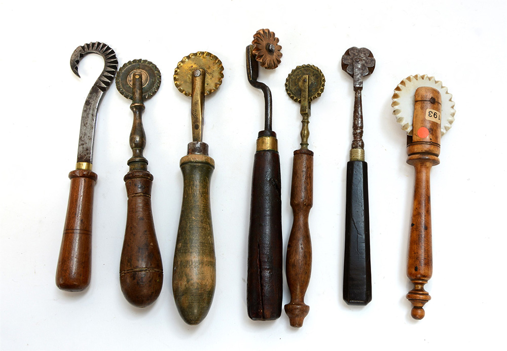 Lotto composto da sette rondelle da pasta miste con manici in legno
