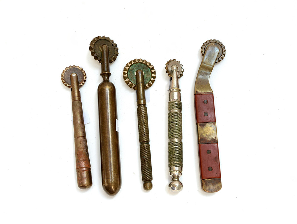 Lotto composto da cinque rondelle da pasta in ottone pieno miste