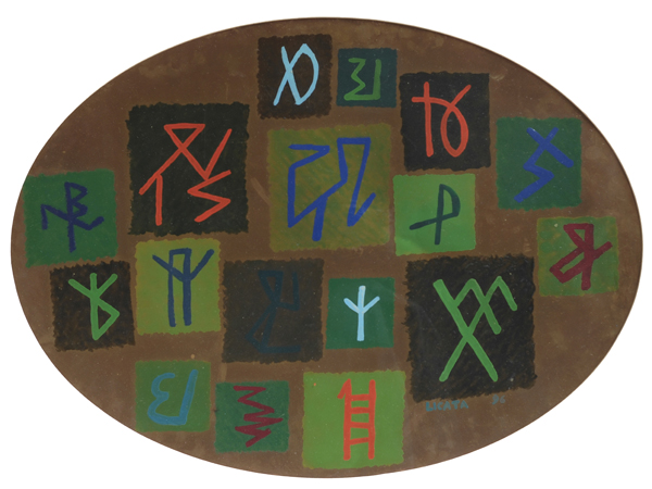 Riccardo Licata (Torino, 1929) Alfabeto, 1996 Acrilici e smalti su rame, cm. 50x70 Firma e data in basso a destra.