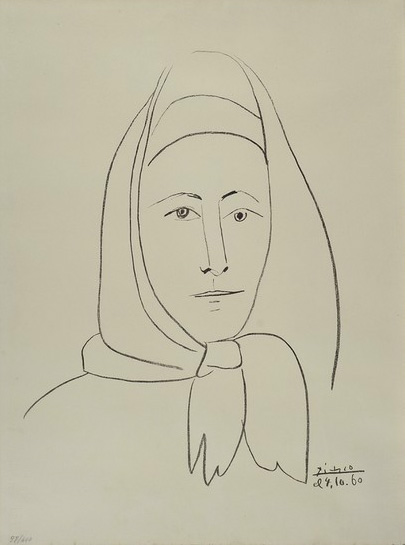 Pablo Picasso (Malaga, 1881 - Mougins, 1973) FEMME ESPAGNOLE, 1960 Litografia, mm. 770x570; es. 97/400 Firma e data in lastra. Editore e Stampatore:Il Bisonte Edizioni d?Arte - FirenzeBibliografia: F. Mourlot, Picasso Lithographe, A. Sauret Edition du Livre, Parigi 1970Pag. 279 n° 357; G. Bloch, Picasso, Catalogue de l?Oeuvre Gravé et Lithographié 1904/1967, Edizioni Kornfeld, Berna, 1984,Tomo I - pag. 219 n° 1009