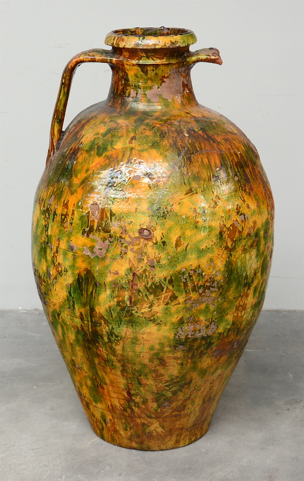 Antico orcio biansato in terracotta smaltata (h cm 100) (difetti e mancanze)