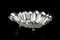 Centrotavola in argento di forma ovale, sagomato da baccellature e costolature radiali alternate e sorretto da quattro piedini sferici. Italia, inizi secolo XX (cm 38x30 ca; h. cm 9,5 ca.) (g 770 ca.) (difetti)