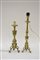 Due candelieri tripodi in bronzo con fusto tornito montati a luce elettrica...