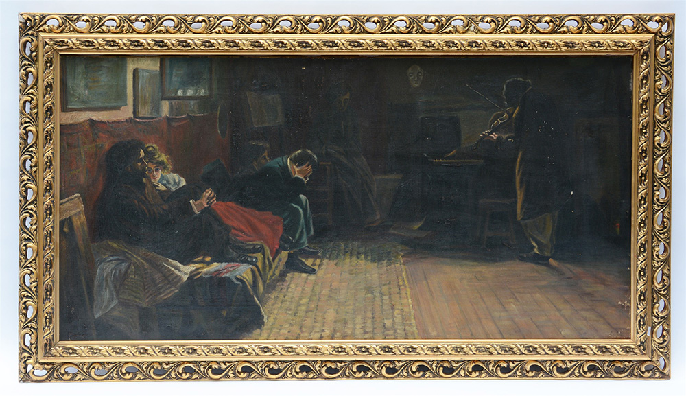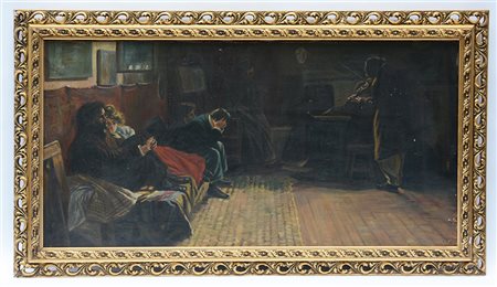Ignoto "Scena d'interno" olio su tela (cm 50x100) in cornice