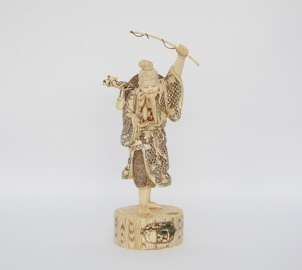 Figura di pescatore in osso Giappone, sec. XX (h. 51,8 cm.)(difetti)