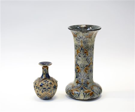 Manifattura inglese. Doulton Lamberth, due vasi con decori in rilievo marcati...