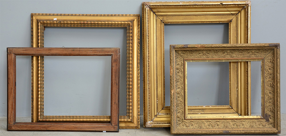 Lotto composto da quattro cornici di misure e materiali diversi (difetti)