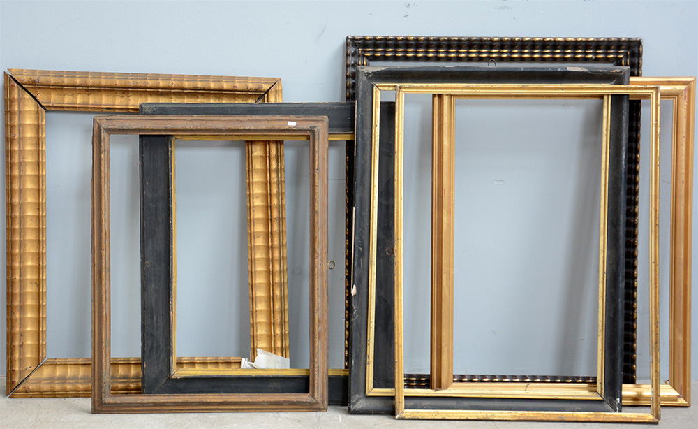 Lotto composto da sette cornici di misure e materiali diversi (difetti)