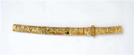 Pugnale "tanto" in osso da cerimonia a decorazione incisa (l. 46 cm.) (difetti) Giappone, sec. XX