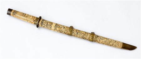 Pugnale "tanto" in osso e metallo inciso (l. 54 cm.) (difetti) Giappone, sec. XX
