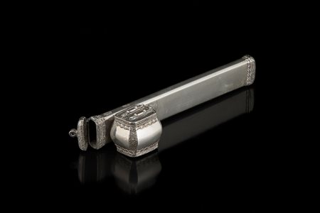 A silver writing set with pen holder and inkwell Ottoman Empire, late 19th-early 20th century (lenght cm 22) (g 300 ca.) (minor defects)