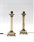 Coppia di candelieri in onice a forma di colonna classica montati in bronzo e...