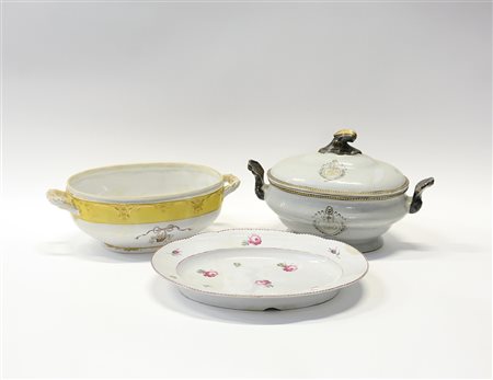 Manifatture diverse, lotto composto da due zuppiere ed un piatto ovale in...