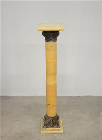 Colonna in alabastro con fusto tornito con base e capitello in legno...